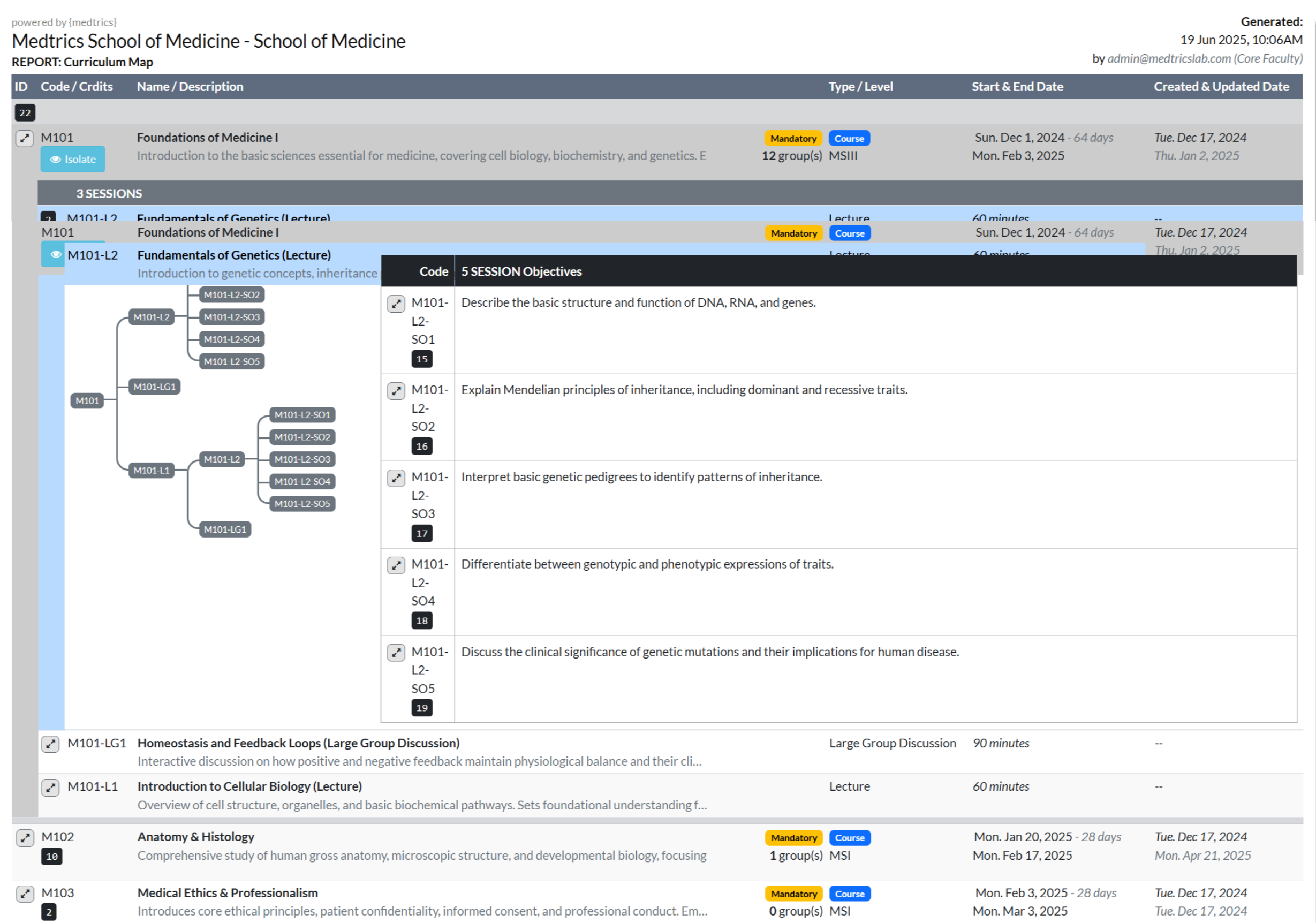 Launching a new academic year is simple when you build on what already works. Medtrics lets your team carry forward sessions, objectives, and assessments while refreshing content as needed. You preserve consistency, save time, and start each term with a curriculum that’s already aligned.