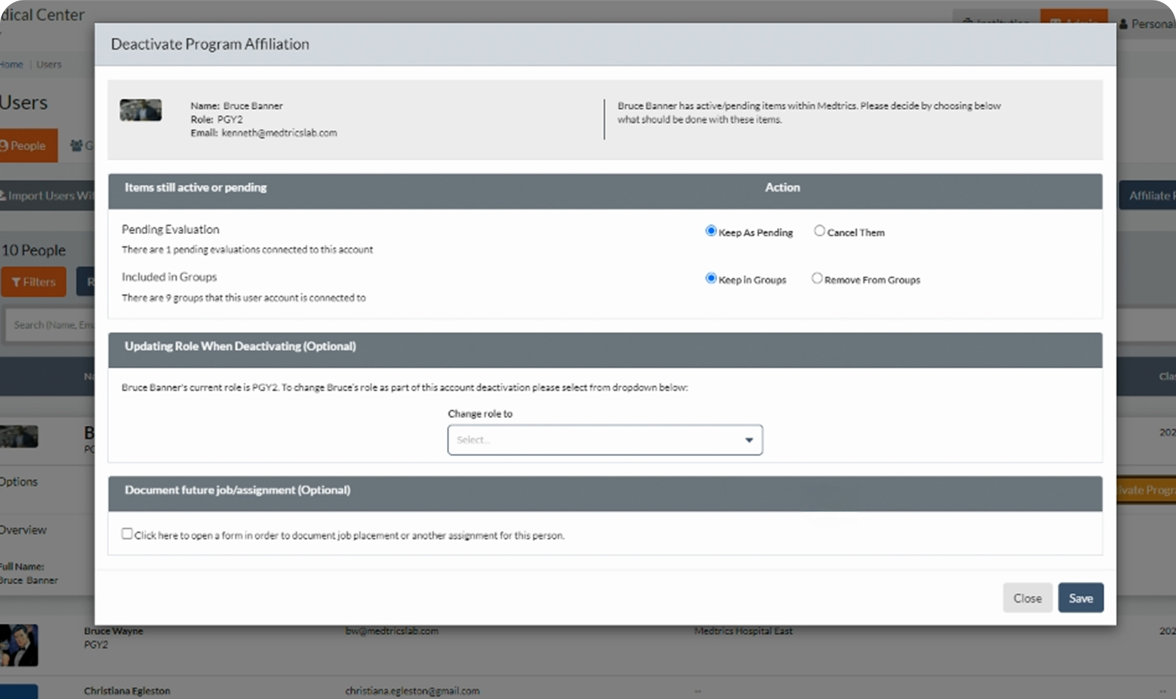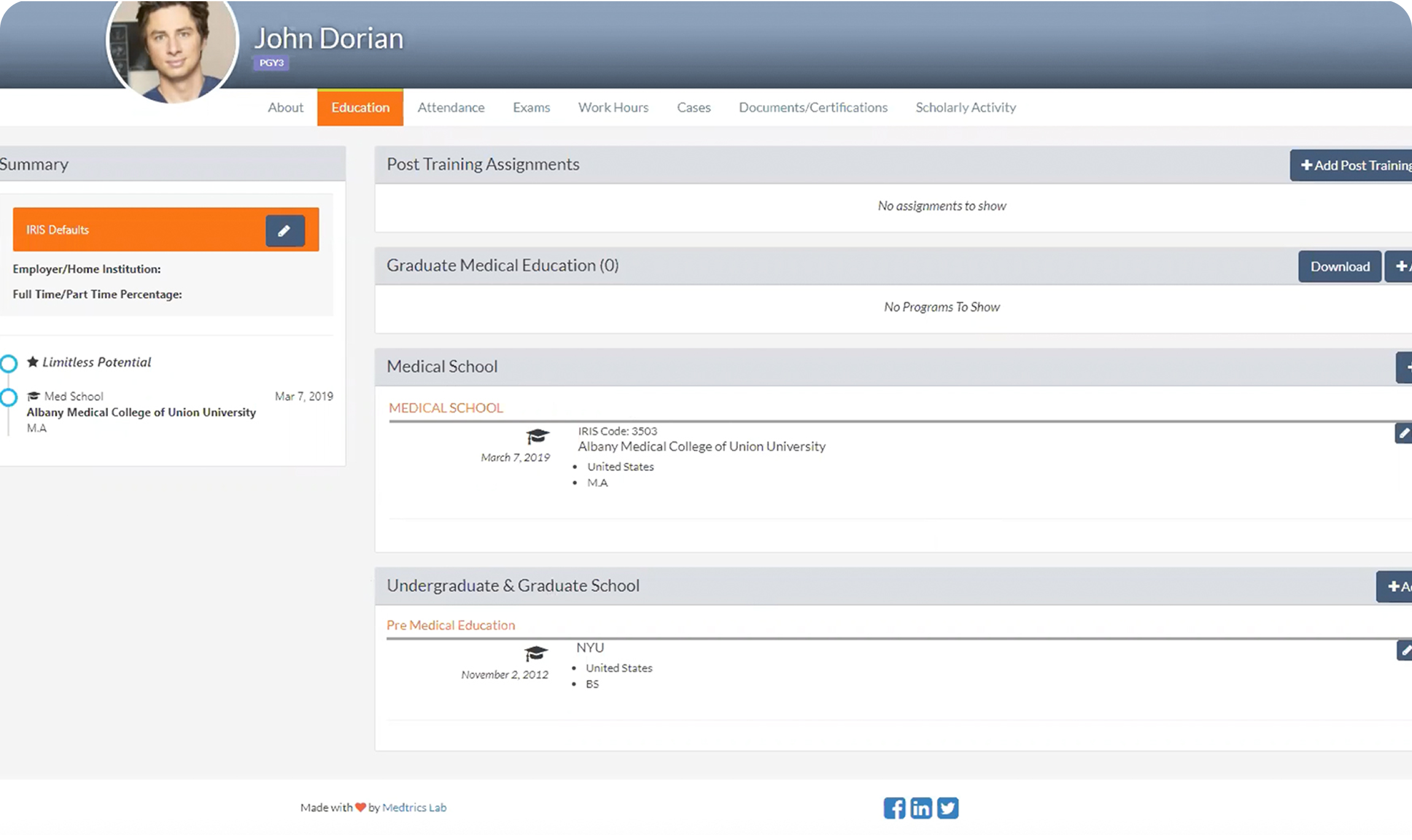 Too much faculty and trainee data ends up scattered across spreadsheets, folders, and siloed systems. That slows down reviews, delays credentialing, and creates oversight gaps. Medtrics replaces the patchwork with a structured portfolio. Every user has a complete, accessible record that makes it easier to track progress, verify readiness, and meet accreditation standards.